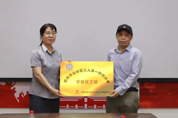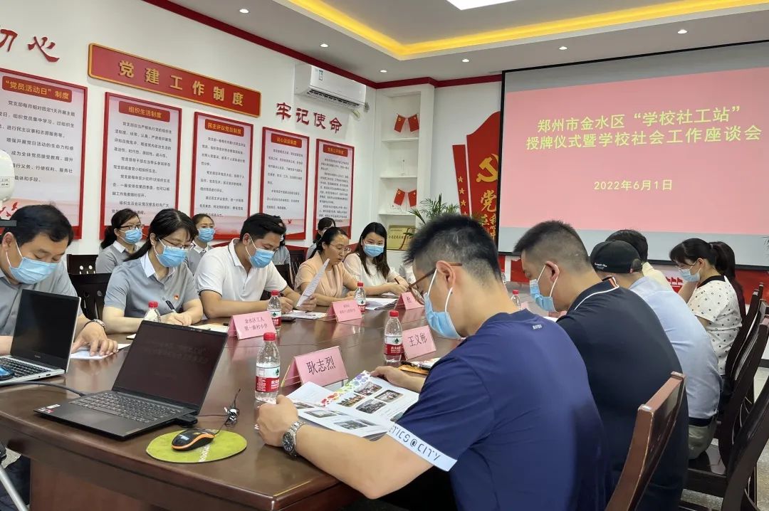 为了充分发挥学校社会工作的专业力量,推动构建未成年人学校保护的服务体系,2022年6月1日下午在河南省民政厅、郑州市民政局和金水区民政局的指导下,由金水区教育局主办,郑州市金水区华心社会工作服务中心承办的郑州市金水区学校社工站授牌仪式暨学校社会工作座谈会在金水区工人第一新村小学举行。此次活动出席的领导有:河南省民政厅慈善事业促进和社会工作处处长二级调研员吴艳君,郑州市民政局儿童福利和慈善事业促进处处长王自兴,金水区社会工作发展指导中心主任路莹,金水区民政局社工科科长王义彬、副科长耿志烈,金水区教育局教育科科长杜菁,郑州市金水区华心社会工作服务中心总干事郝红,以及金水区工人第一新村小学、金水区文化绿城小学南校区、金水区金桥学校和郑州市第四十七初级中学学校代表,10名华心学校社工们参加本次会议。